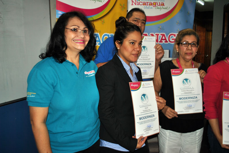 Las empresas certificadas este año con el sello Moderniza son los hoteles: Holiday Inn, Boutique Villa Maya, El Conquistador, Los Pinos, El Contempo, Xolotlán, y la Posadita de Bolonia. También fueron certificados los restaurantes: Taquería La Pancha, Chiles Mexican Grill, Taky Pollo, Asados don Pancho y Asados Doña Tania. Igualmente el Centro recreativo Chinchilla y los eco albergues Reserva de Montibelli, Los  Cardones Surf Lodge y Finca Las Delicias.