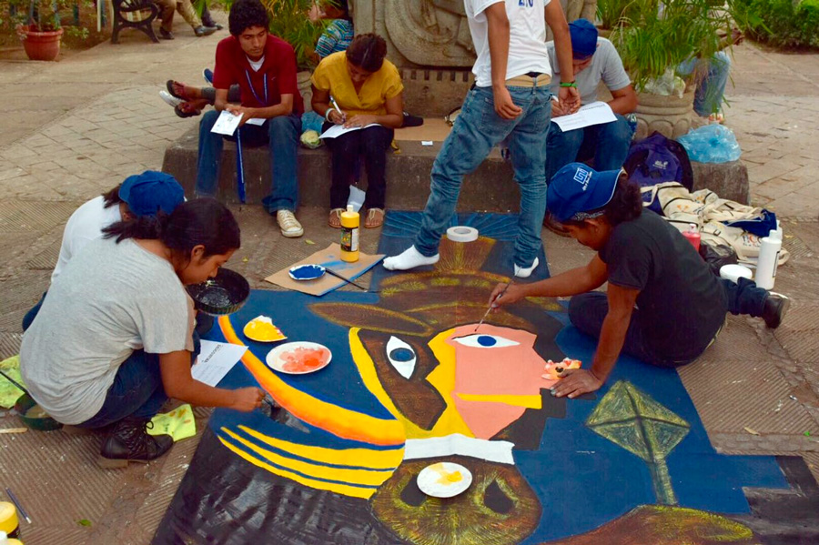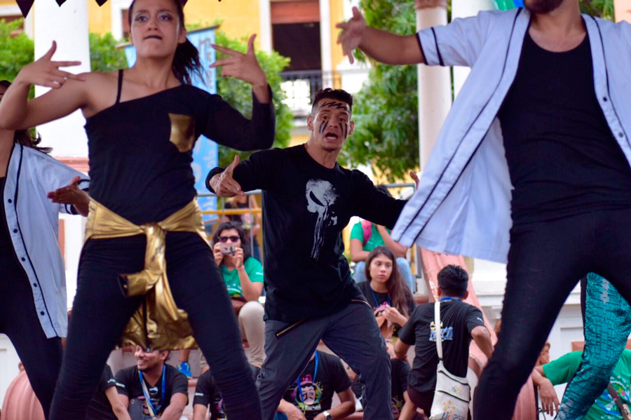 Los jóvenes tuvieron diversos espacios para mostrar lo mejor de su arte entre los que destacaron bailes, música, teatro, poesía y artes plásticas. Los jóvenes se tomaron el Parque Central de esta hermosa ciudad, así como la casa de los Tres Mundos y frente a la iglesia de Guadalupe.