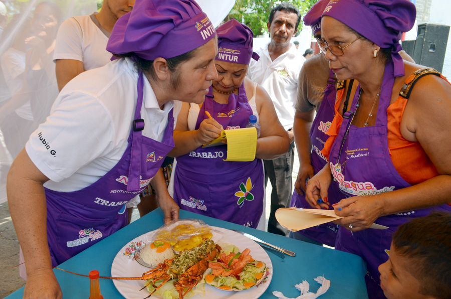 Se realizó un concurso gastronómico con siete madres que presentaron los mejores platillos de comidas de mar, desde un rico ceviche de pescado con tostones, pescado frito, camarones en salsa, hasta exóticas sopas marineras. El jurado estaba compuesto por prestadores de servicio y profesores de comidas.
