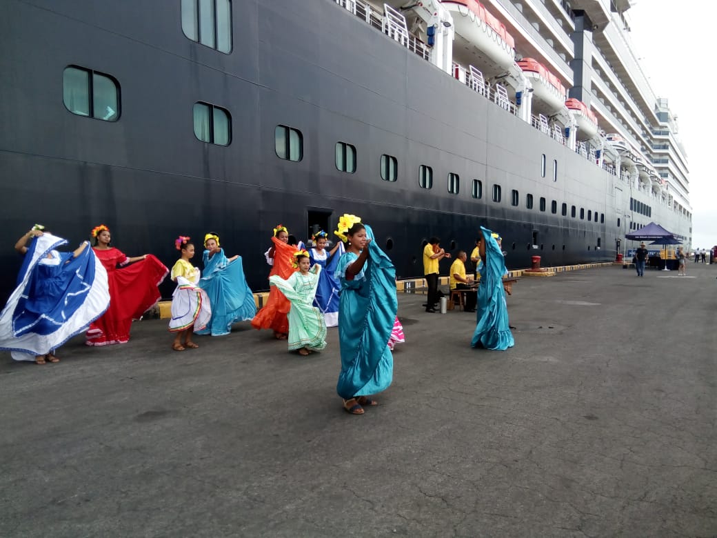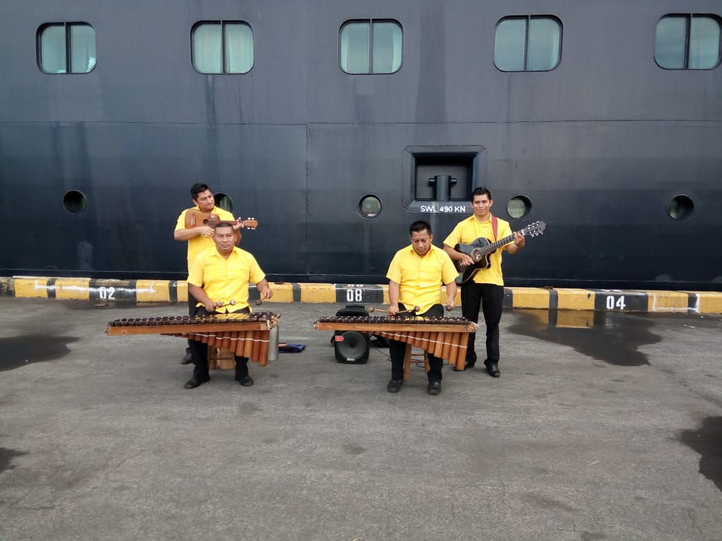 A los visitantes como es costumbre, el Instituto Nicaragüense de Turismo los recibió con bailes tradicionales y rondalla de marimba que interpretó música nacional.