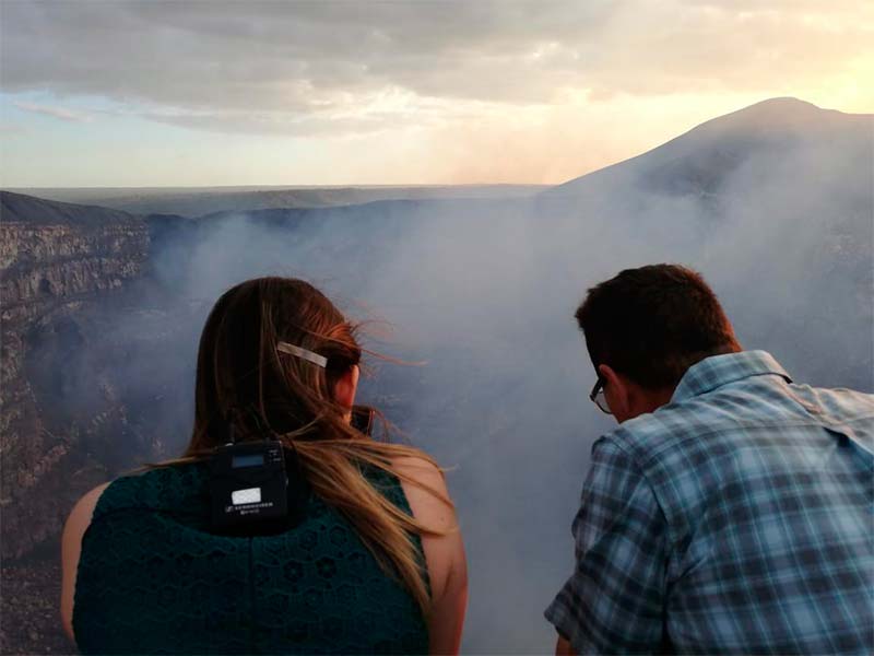 El imponente volcán Masaya también fue parte de ese recorrido que realizó el equipo de NCC Iberoamérica; la plaza de la Paz, Vida y Esperanza en Managua fue otro escenario para la producción.