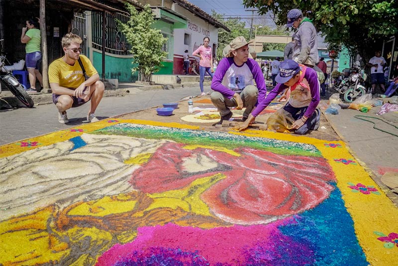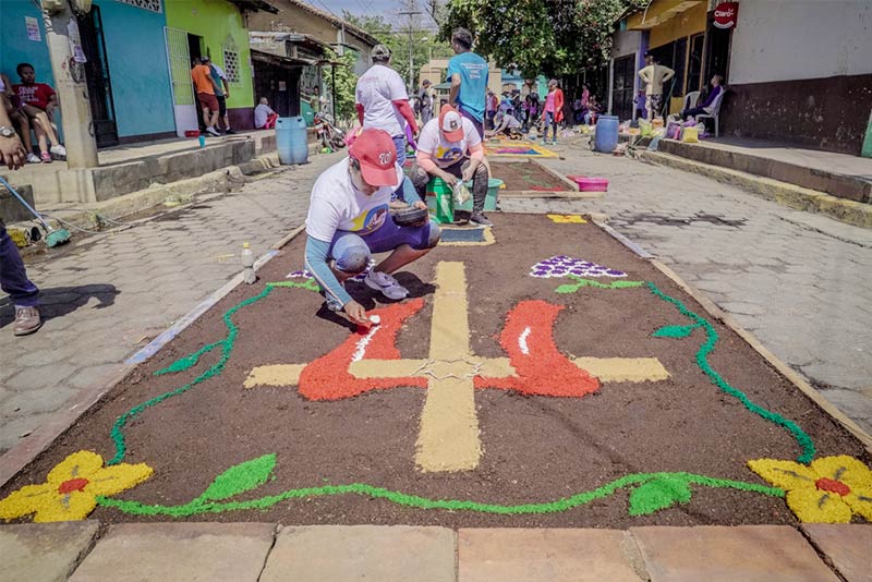 Un Viernes Santo más, las familias del barrio indígena de Sutiaba, en León, se prepararon con los materiales necesarios para elaborar las tradicionales alfombras pasionarias que desde hace más de un siglo forman parte de las tradiciones en Semana Santa.
