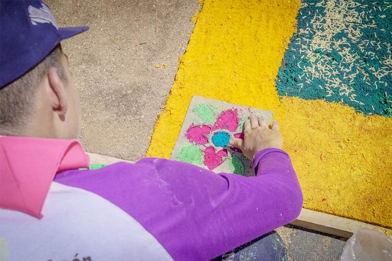 Desde las 9:00 de la mañana, las familias comenzaron a elaborar más de 30 alfombras inspiradas en la pasión y muerte de Jesucristo.